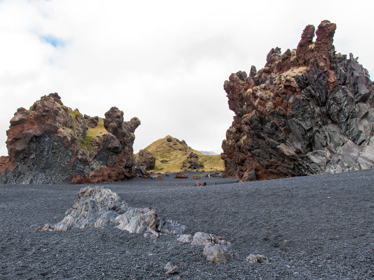 Djupalonssandur ist ein wunderschöner schwarzer Lavastrand. Die kleinen schwarzen glatten Kieselsteinen (Djúpalónsperlur - Perlen von Djúpalón genannt) machen ihn einzigartig. Eine Reihe mystischer Felsen tauchen aus dem Nichts auf, umtost von der gefährlichen Brandung des Atlantiks. Diese wurde im März 1948 dem englischer Trawler The Epine GY7 zum Verhängnis, als ein Schneesturm das Schiff zerstörte. Vierzehn Männer kamen ums Leben und nur fünf konnten gerettet werden. Die rostigen Teile stehen heute unter Denkmalschutz und ihr könnt sie über den Stand verteilt, entdecken.