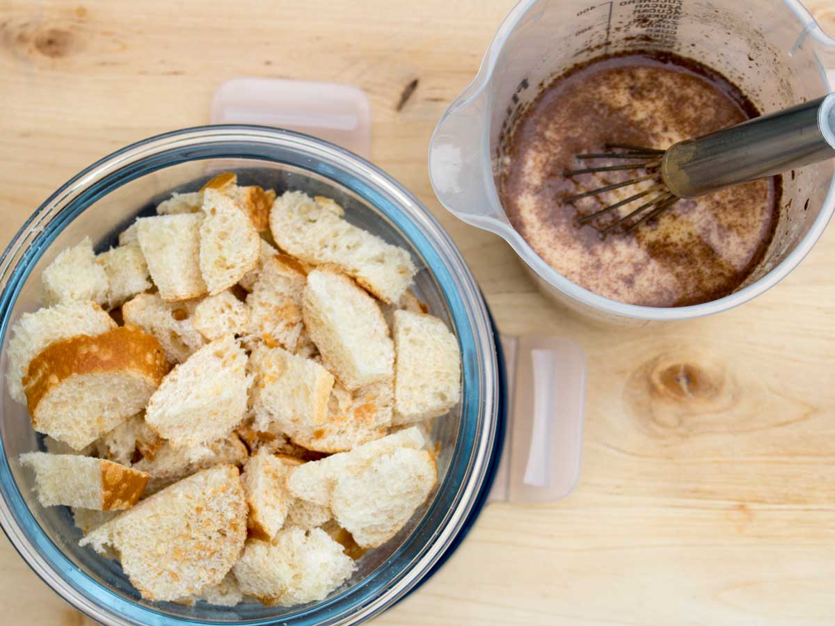 Die Semmeln in grobe Stücke schneiden (ca. 1-2 cm). Die Eier mit Zimt und Zucker vermischen. Die Milch leicht erwärmen. Milch sowie die gewürzten Eier über die Brötchen gießen. Einige Minuten (ca. 5-10) ziehen lassen bis alles durchweicht ist.