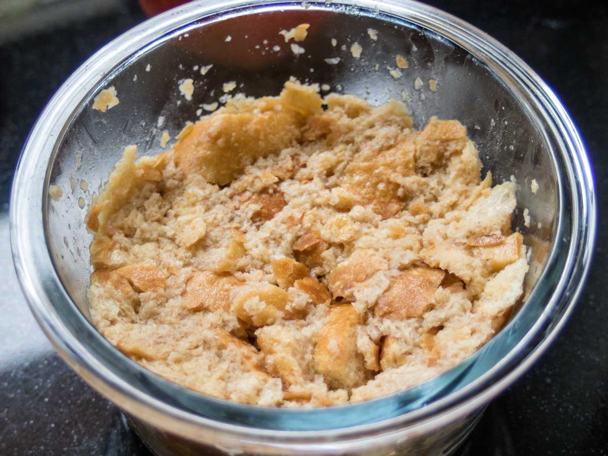 Das Fett in einer Pfanne erhitzen, die eingeweichten Semmelwürfel hineingeben und ein paar Minuten ringsum goldbraun braten.