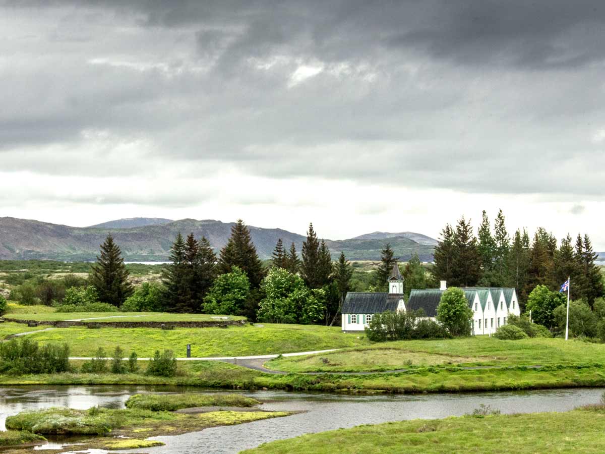 Þingvallakirkja die "Kirche der Parlamentsfelder" zusammengesetzt aus den isländischen Worten Þing ♪ - Parlament völlur ♪ - Feld kirkja ♪ - Kirche. Das heutige Gebäude wurde 1859 erbaut und ersetzte eine frühere Kirche, die im Jahr 1000 n. Chr. errichtet worden war. Die ursprüngliche Kirche war eine der ersten Kirchen in Island und stand in enger Verbindung mit dem Alþingi (Althing), einer der ältesten bestehenden parlamentarischen Institutionen der Welt. Die Þingvallakirkja ist normalerweise während der Sommersaison vom 1. Juni bis 31. August von 09:00 bis 12:00 Uhr und von 13:00 bis 16:00 Uhr geöffnet. Die Öffnungszeiten basieren jedoch darauf, dass ein Mitarbeiter vor Ort ist.